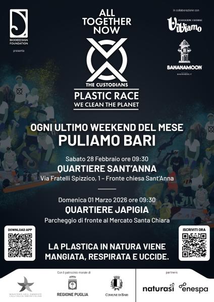 Questo mese continua sul nostro territorio un’iniziativa di cleanup nazionale: The Custodians Plastic Race – We Clean the Planet – All Together Now, promossa dalla BioDesign Foundation.